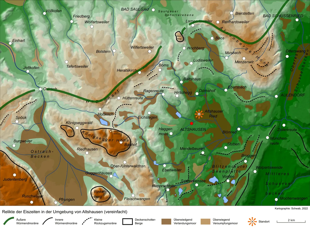 Mehr erfahrenDie nachfolgende Karte zeigt den Wagenhart als Teil der von den Gletschern geprägten Landschaft rund um Altshausen.