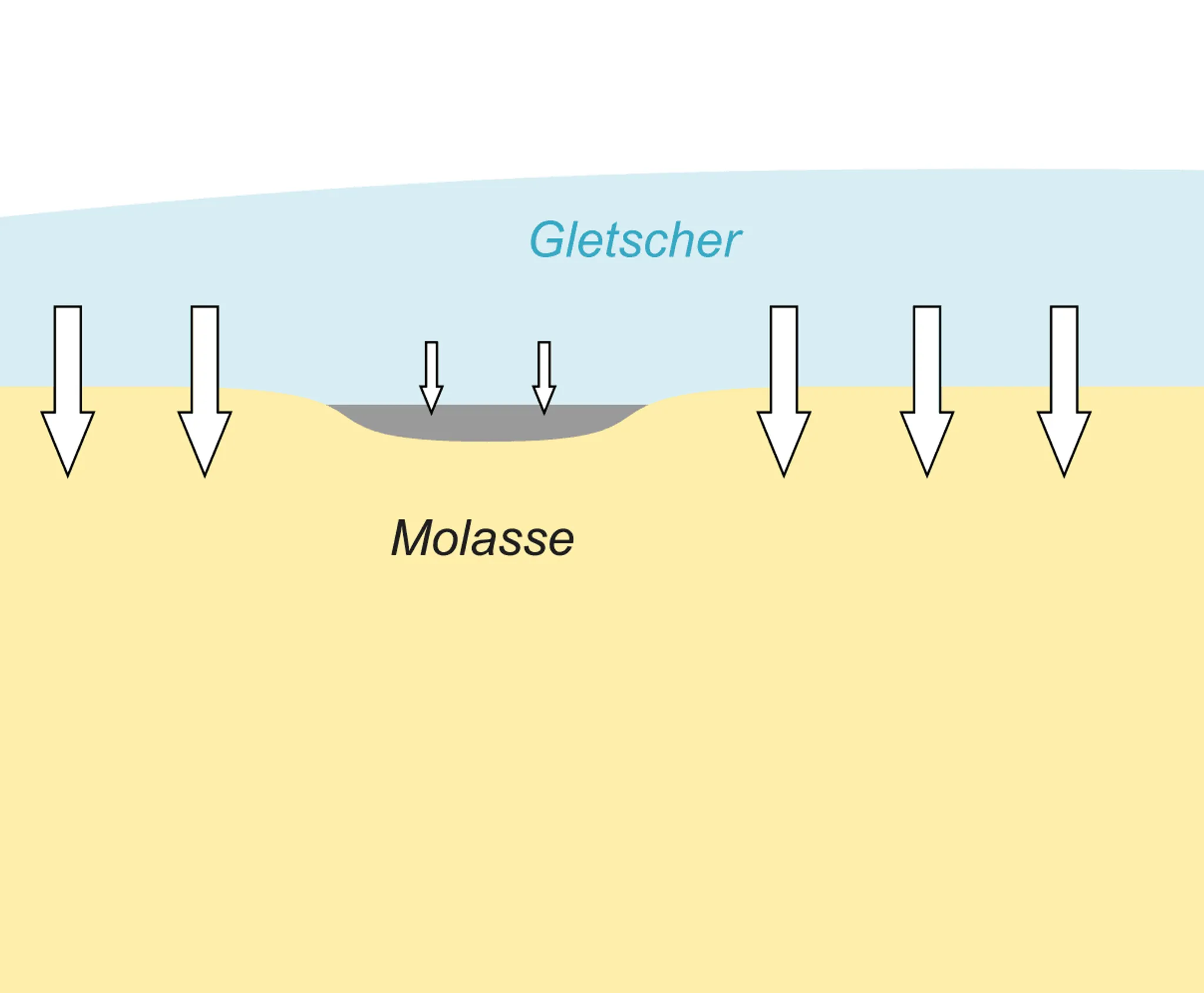 Mit der folgenden Grafikserie kannst du dir die beschriebenen Vorgänge mit einfachen geologischen Querschnitten nochmals erklären lassen.