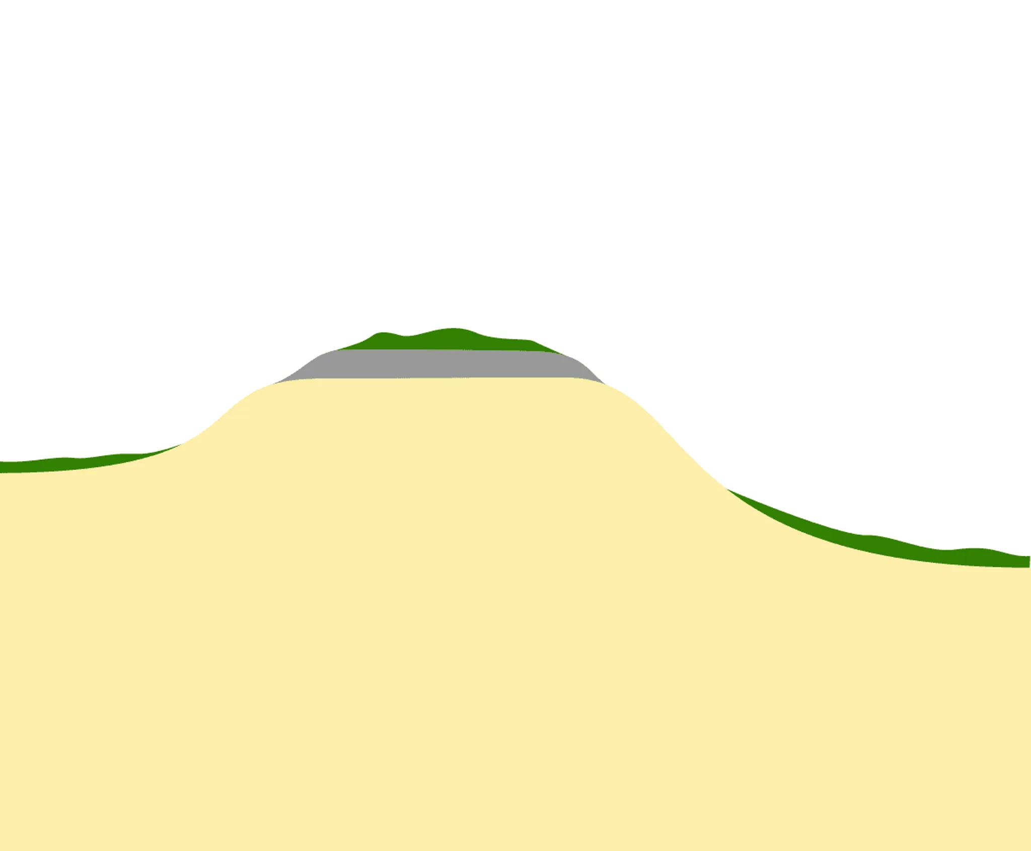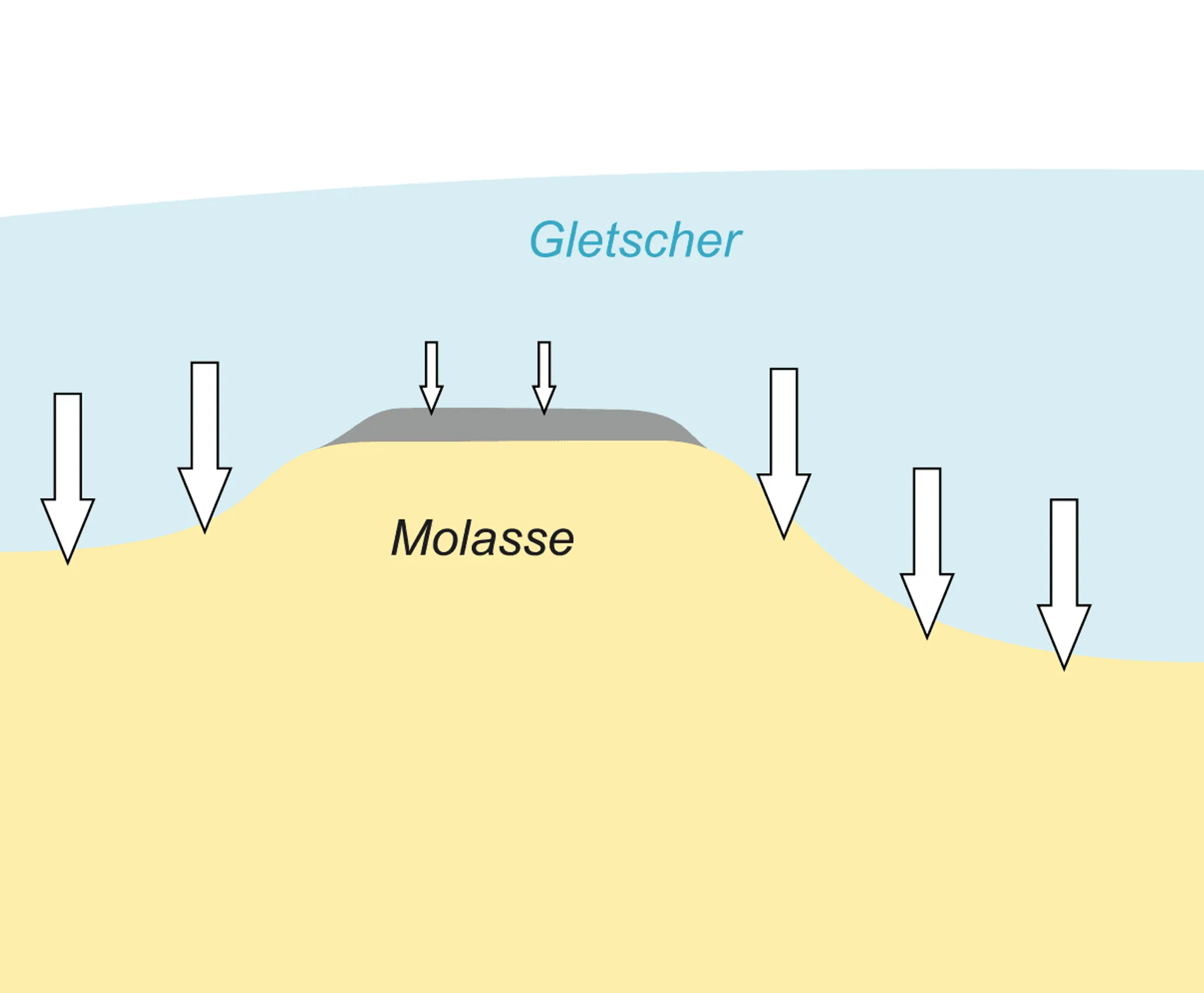 Aus den Querprofilen durch solche Berge wird deutlich: Im Untergrund bestehen sie aus Molasse. Auf die Molasse folgt ein Schutzschild aus alten Deckenschottern. Die Hochlagen weisen Moränenablagerungen aus den großen Beckeneiszeiten auf.
